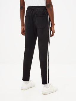 Tepláky s pružným pásom. Šikmé bočné vrecká. Pruhy v kontratsnej farbe. Príjemný materiál.