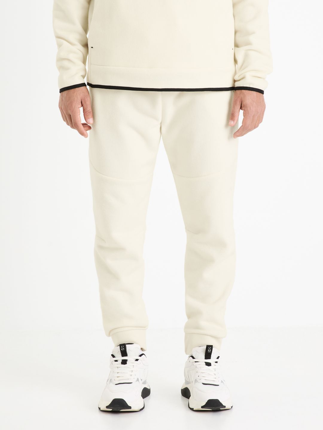 Jednofarebné tepláky s pružným pásom. Predné šikmé vrecká. Nohavice s pružným lemom. Tepláky pre voľný čas.