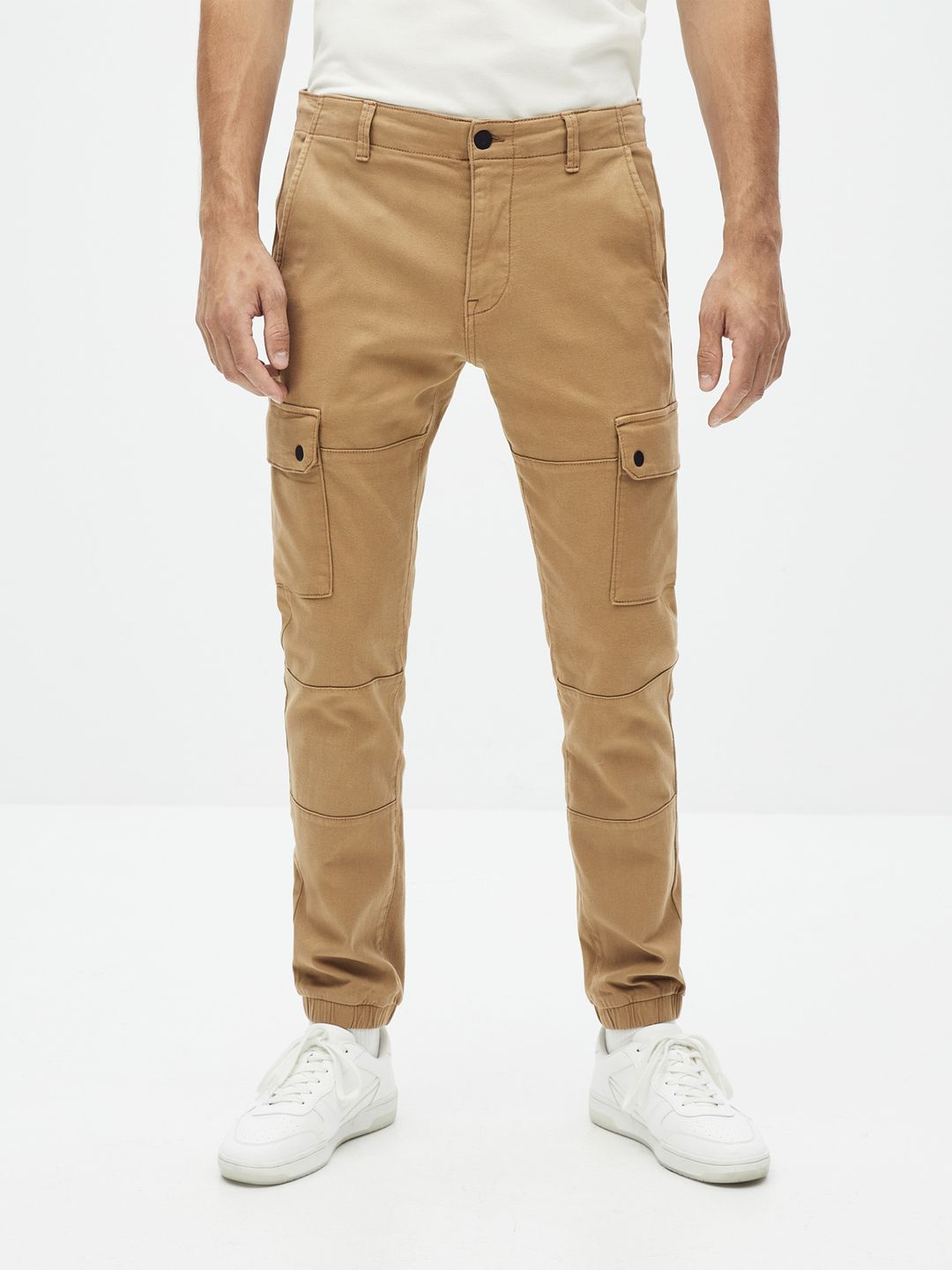 Nohavice cargo v slim strihu. Športový strih s vreckami. Pevný pas so zapínaním na zips a gombík. Šikmé bočné vrecká. Bavlna s elastanom.