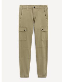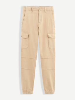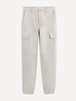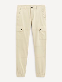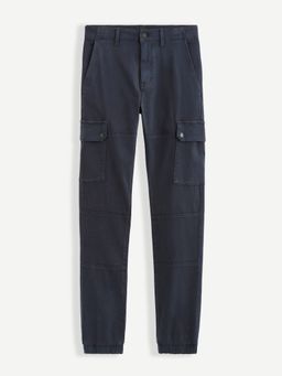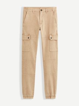 Bavlnené športové nohavice cargo s elastanom. Jednofarebné kapsáče s vyšším pásom a bočnými vreckami. Pevný pás s pútkami na opasok. Predné a zadné vrecká.