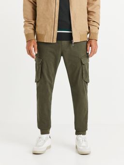 Bavlnené voľnočasové nohavice cargo s elastanom. Pružný pás so sťahovacou šnúrkou. Veľké bočné vrecká s klopami. Predné šikmé vrecká. Zadné skryté vrecká. Nohavice zakončené do pružného lemu.