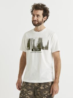 Bavlnené tričko s potlačou. Krátky rukáv a okrúhly výstrih ku krku.