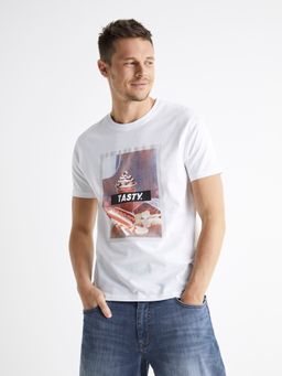 Bavlnené tričko s food potlačou TASTY. Biela farba. Tričko má krátky rukáv a okrúhly výstrih ku krku.