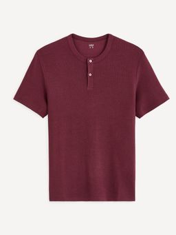 Príjemné jednofarebné tričko s krátkym rukávom. Okrúhly výstrih so zapínaním na tri gombíky. Rovný strih. Hodí sa k džínsom a teniskám.