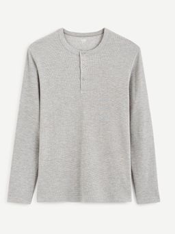 Príjemné tričko s dlhým rukávom. Okrúhly výstrih so zapínaním na tri gombíky. Rovný strih. Hodí sa k džínsom a teniskám.
