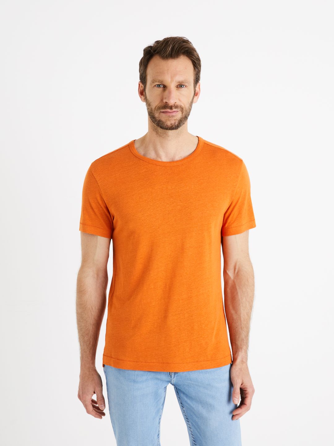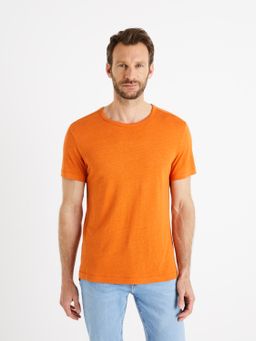 Jednofarebné tričko s krátkym rukávom. Okrúhly výstrih. Mäkký bavlnený úplet.