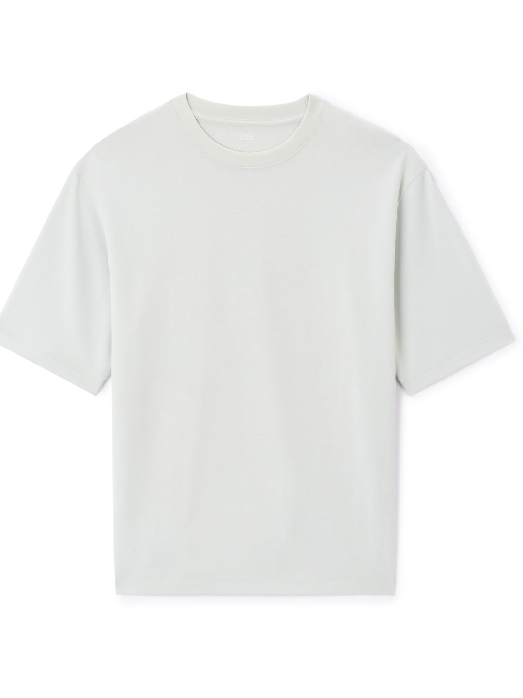 Oversize tričko s krátkym rukávom. Krátke spadnuté rukávy. Okrúhly výstrih s pružným nápletom. Rovný a široký strih.