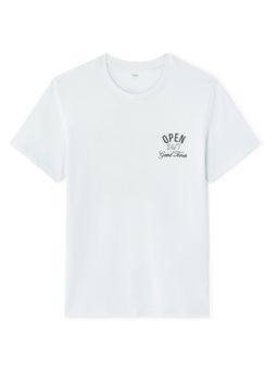 Svetlomodré tričko s potlačou vpredu aj vzadu. Rovný strih, krátky rukáv. Perfektne sa bude hodiť k džínsom alebo chino nohaviciam.
