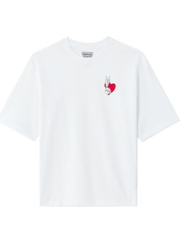 Limitovaná edícia pre páry, ktoré chcú zažiariť štýlom aj humorom. Biele tričko s potlačou zajačika Bugs Bunny, voľným strihom a okrúhlym výstrihom je exkluzívny kúsok na Valentína, ktorý môžeš zladiť so svojím partnerom a osláviť tak spoločný štýl jedinečným spôsobom.
