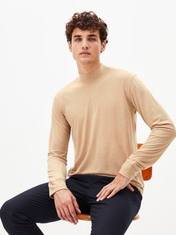 Pánske tričko s dlhým rukávom. Pri krku stojačik. Tričko má rovný strih a dlhé rukávy s nápletmi. Príjemná béžová farba sa dobre kombinuje.