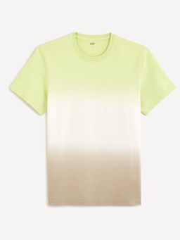 Viacfarebné tričko s krátkym rukávom. Okrúhly výstrih a rovný strih. Mäkký bavlnený úplet.