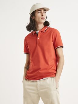 Bavlnené polo tričko s farebným olemovaním rukávov a goliera. Krátky rukáv a rovný strih. Drobná reliéfna štruktúra piké. S obsahom elastanu.