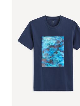 Bavlnené tričko s okrúhlym výstrihom a krátkym rukávom. Výrazná potlač v modrej farbe.