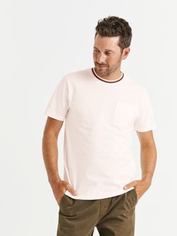 Bavlnené tričko s krátkym rukávom. Okrúhly výstrih s farebným nápletom. Na hrudi malé vrecko. 100% bavlna.