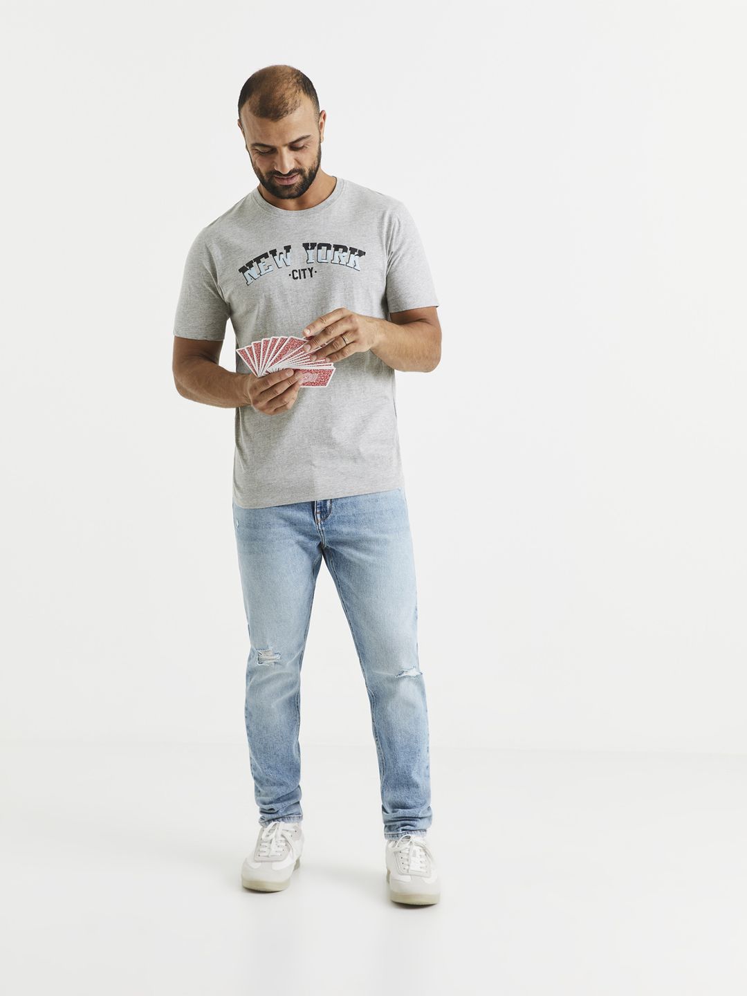 Bavlnené tričko s nápisom New York. Krátke rukávy a okrúhly výstrih ku krku.