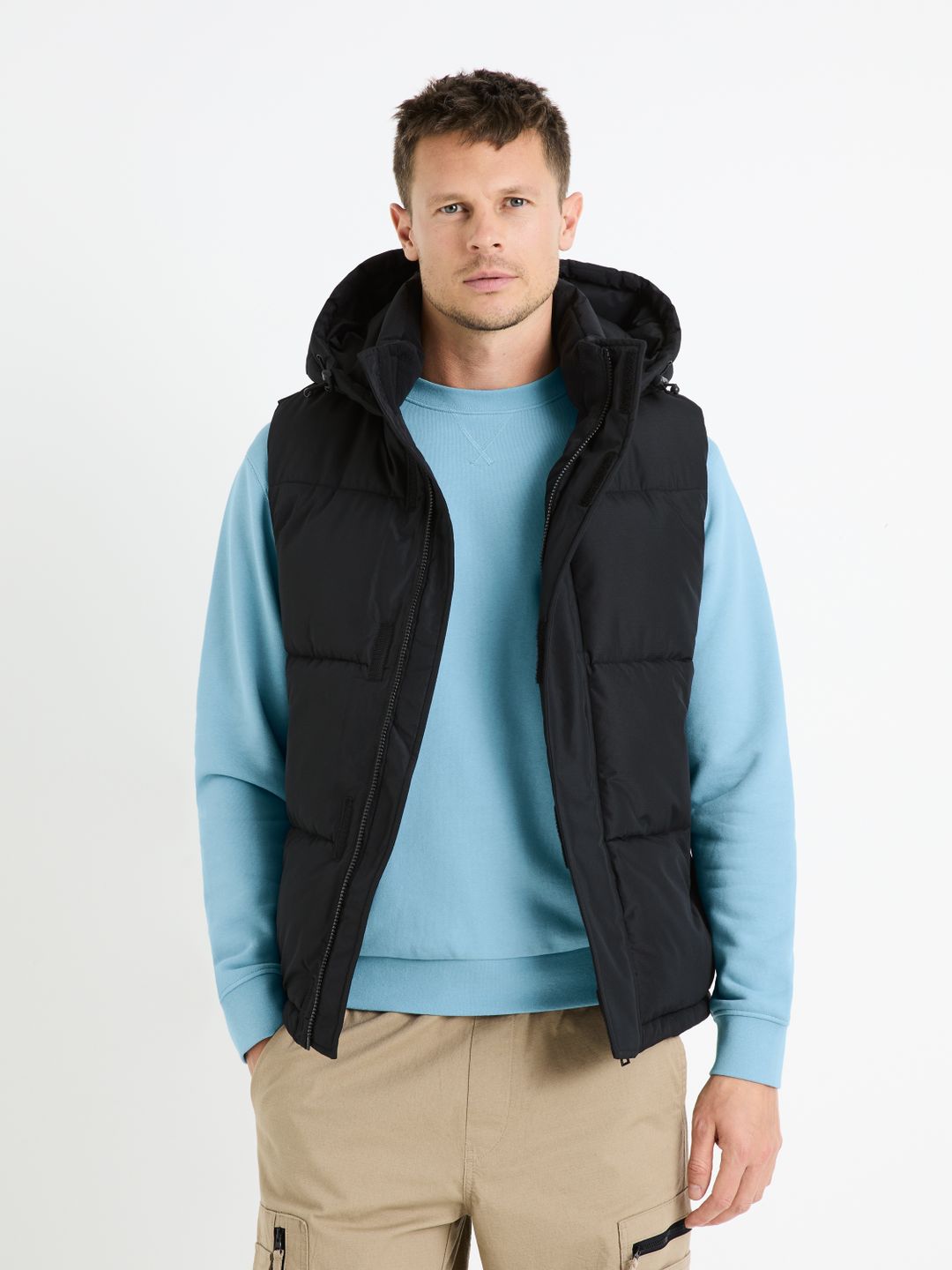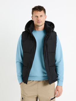Zimná prešívaná vesta s vysokým golierom s kapucňou. Zapína sa na zips. Krycia chlopňa na suchý zips. Predné vrecká na druky. Rovný strih a skryté vrecko. Možno ju nosiť samostatne, alebo v zime pod bundu či kabát, ako ďalšiu vrstvu proti chladu. Praktický módny kúsok, ktorý rozhodne musíš mať.