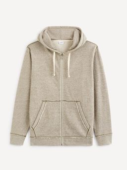 Mikina so zapínaním na zips. Kapucňa so sťahovacou šnúrkou. Delené klokanie vrecko. Široké a pružné náplety.