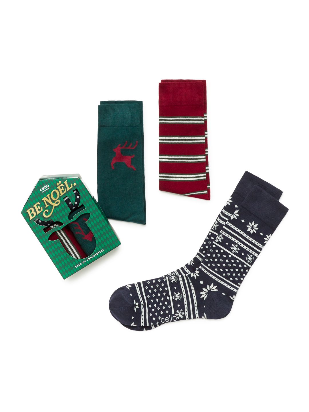 Urob sviatky štýlové týmito vysokými ponožkami. Balenie troch párov ponožiek vo vianočnej darčekovej sade s rôznymi veselými vianočnými motívmi, ideálne na originálny sviatočný vzhľad.
