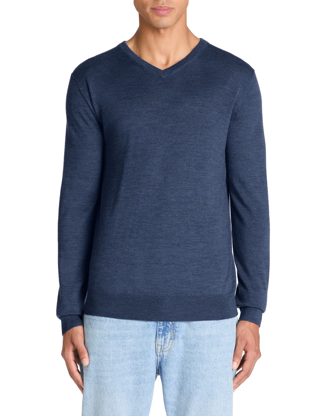 Objav pohodlie a eleganciu s týmto pánskym svetrom v modrej farbe, s okrúhlym výstrihom, ideálnym pre každé ročné obdobie. S priliehavým strihom, dlhými rukávmi a výstrihom do V, vyrobený zo 100% merino vlny s certifikáciou RWS, sa stane skvelým základom tvojho šatníka.