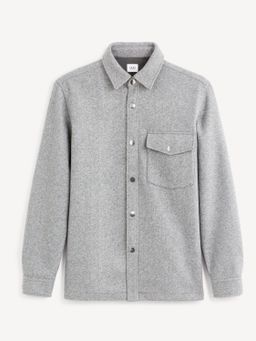 Vrchná košeľa vo voľnom strihu oversize. Zapína sa na druky a má jedno náprsné vrecko s chlopňou. S prímesou vlny. Táto košeľa nahradí bundu.
