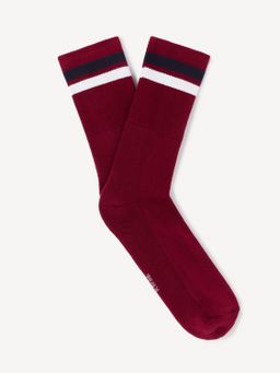 Vysoké ponožky s kontrastným pruhovaním. Vyrobené zo strečovej bavlny.