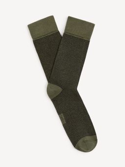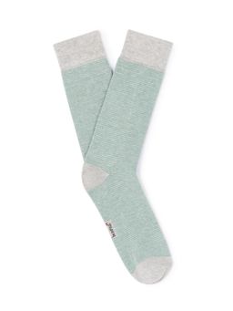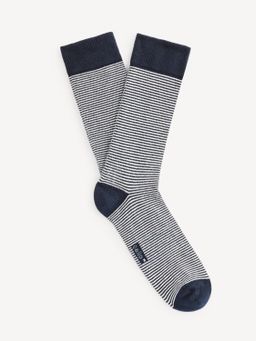 Vysoké ponožky s nápisom be normal.* na chodidle. Špička aj päta v kontrastnej farbe. Drobný pruhovaný vzor.